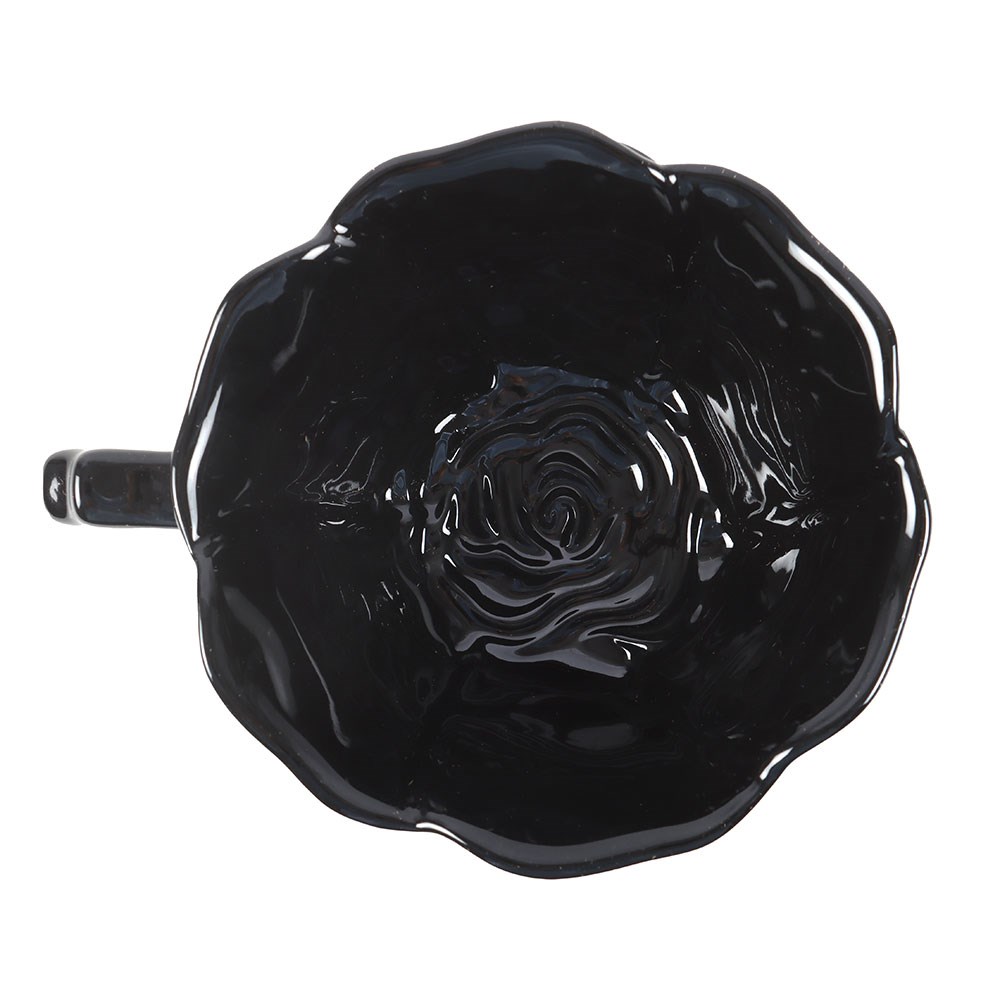 Summon timeless elegance with this black ceramic teacup and matching saucer, sculpted in the likeness of a dark, blooming rose. With its shadowy silhouette and delicate petal detailing, this piece adds a touch of gothic grace to every tea ritual. 250ml capacity. Designed by Something Different Wholesale and part of the Dark Romance collection of romantic gothic gifts and home decor.