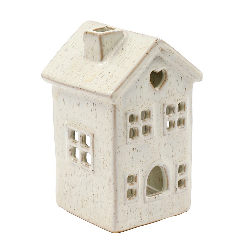 Light up your evening with this charming ceramic house tealight holder. Designed with cut-out windows and a heart detail, it's perfect for tabletops, windowsills or mantel displays. A lovely addition to contemporary decor or as a thoughtful gift for new homeowners, friends or candle lovers.