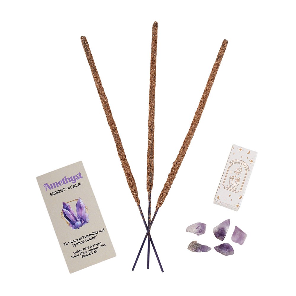 Awaken your sacred space with the enchanting scent of lavender, designed to deepen intuition and support powerful intention-setting rituals. Infused with harmonising crystal energy, each Native Soul Crystal Intentions incense stick helps you connect with your inner guidance and manifest your spiritual desires. Sold as a display set of 12 packs, each containing 10 sticks and amethyst crystal chips.