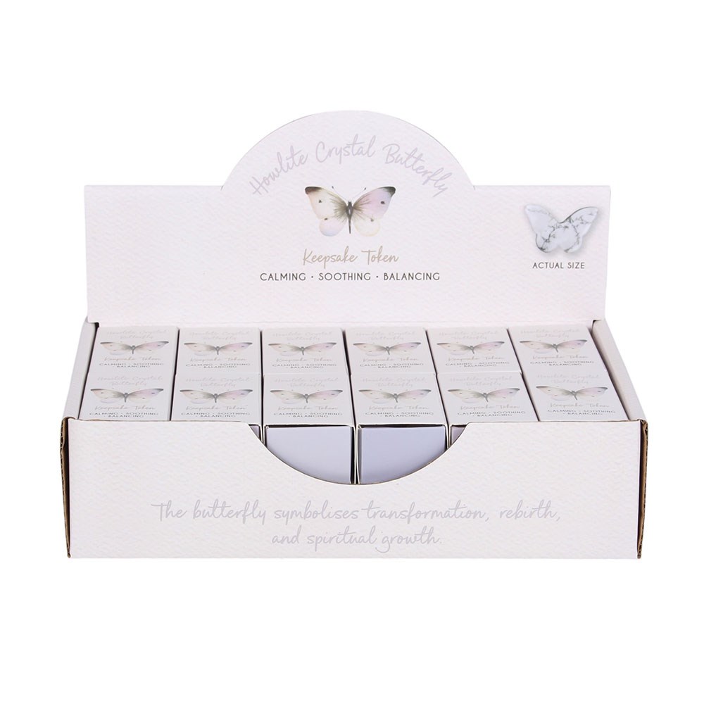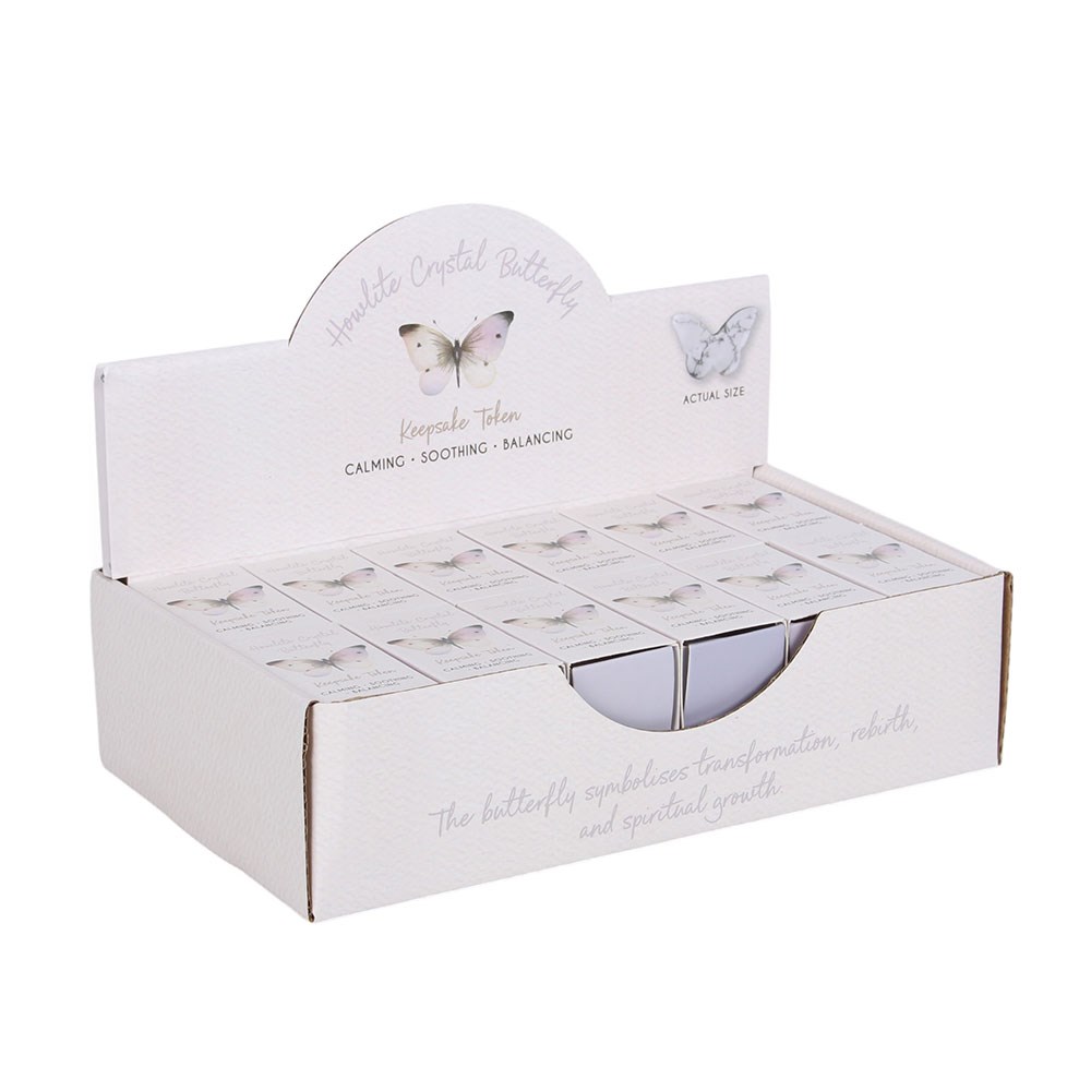Set of 24 Howlite Butterfly Keepsake Tokens in Display