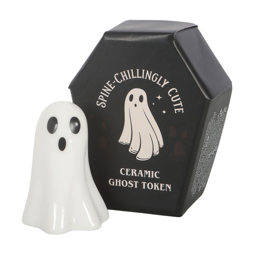 Add a playful spooky touch to shelves or counters with this set of 24 ceramic ghost tokens, each in their own mini coffin box. Perfect for gifting, party favours or seasonal displays, these little ghosts make a fun addition for fans of Halloween and quirky keepsakes. Sold as a set of 24 in a matching cardboard display. Designed by Something Different Wholesale and part of The Haunted Library collection of spooky bookish gifts and home decor.