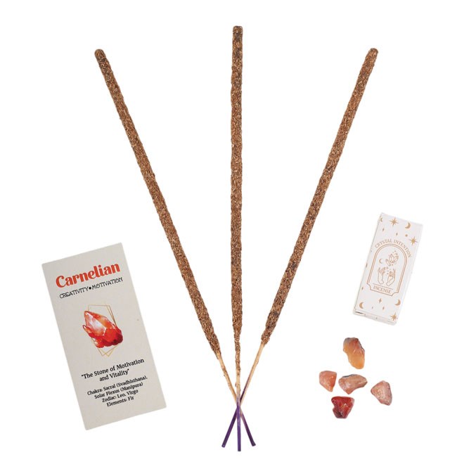 Awaken your sacred space with the enchanting scent of dragon's blood, designed to deepen intuition and support powerful intention-setting rituals. Infused with harmonising crystal energy, each Native Soul Crystal Intentions incense stick helps you connect with your inner guidance and manifest your spiritual desires. Sold as a display set of 12 packs, each containing 10 sticks and carnelian crystal chips.