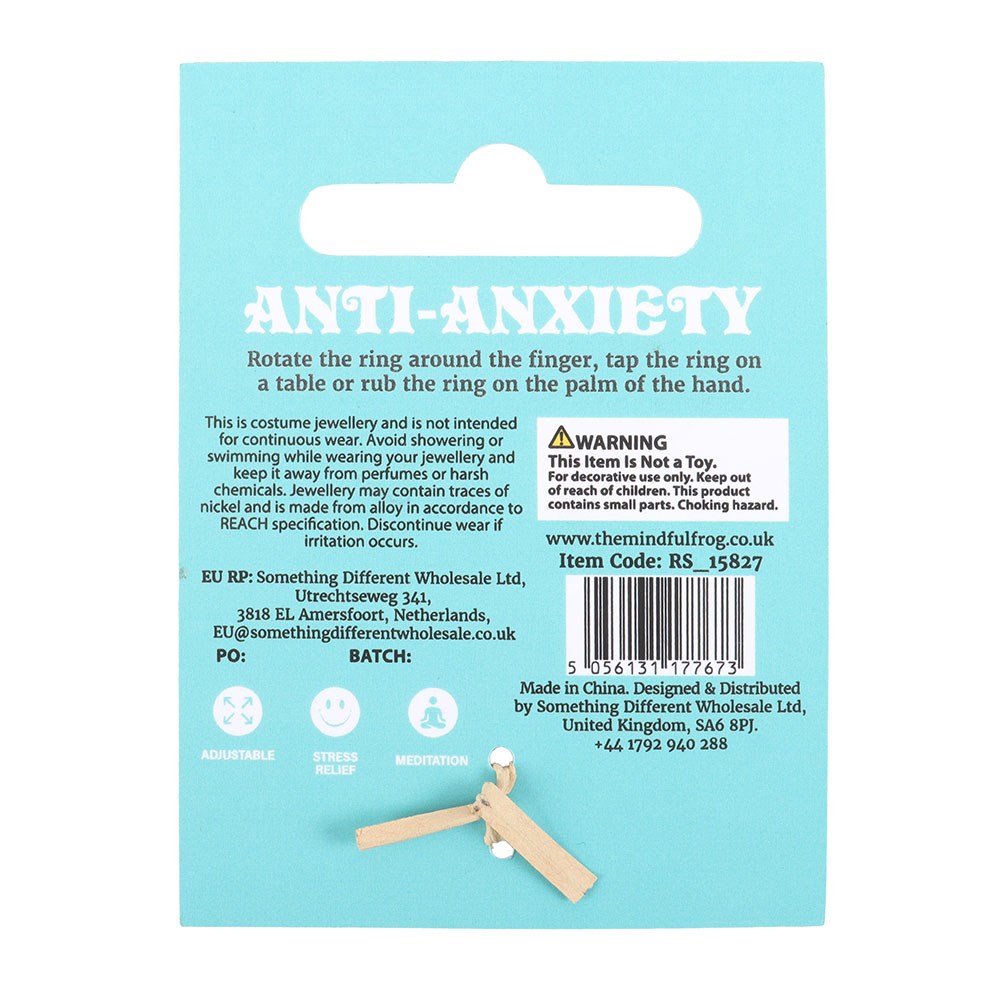 Stay cool under pressure with this fidget ring, designed with a smooth spinning feature to keep hands busy and minds calm. Subtle, stylish and perfect for daily wear, its a go-to tool for moments when you need to reset and refocus. May contain traces of nickel and is made from alloy in accordance to REACH specification. Designed by Something Different Wholesale and part of the Rain or Shine collection of spring wellbeing gifts and cloud accessories.